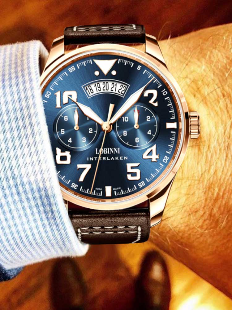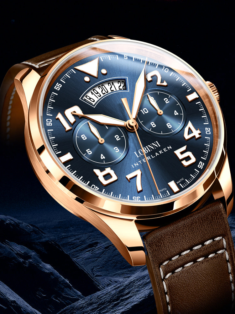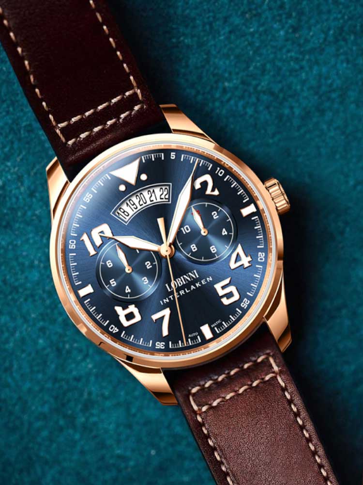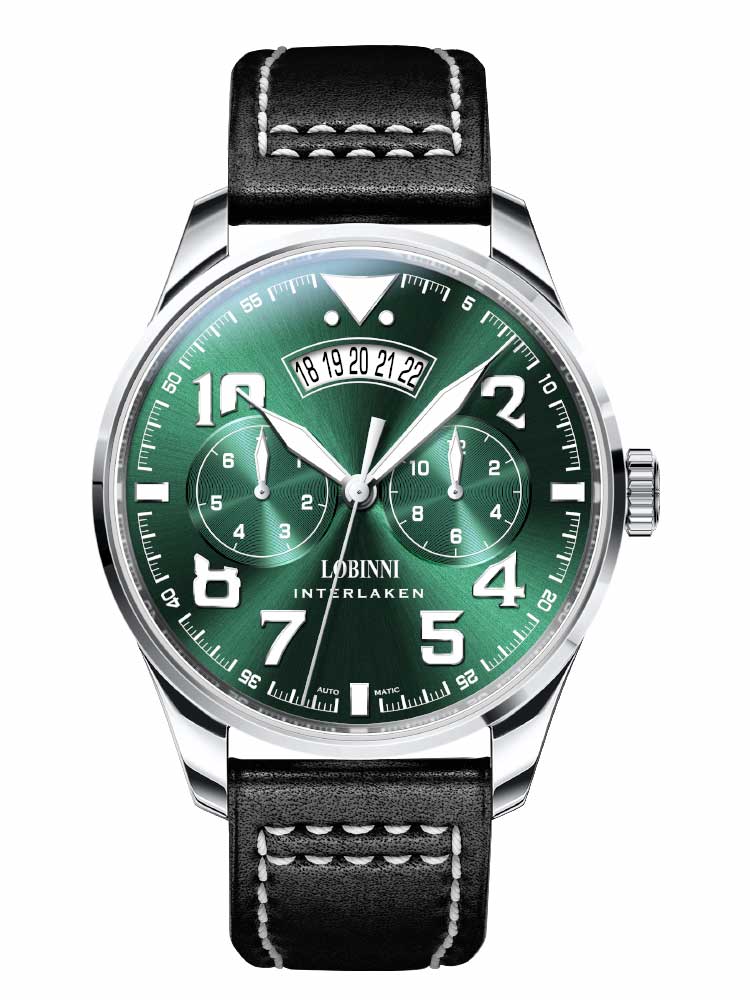 Encased in durable 316L stainless steel, the 42mm case delivers a confident presence without compromising comfort. At 12mm in thickness, it strikes the right balance of boldness and wearability. The matching leather bracelet enhances its sleek, executive look, while the sapphire crystal ensures superior clarity and scratch resistance for long-lasting elegance.