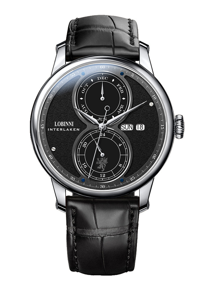 Crafted with a 316L stainless steel case and a luxurious leather strap, the Lobinni 18015 embodies classic sophistication. The sapphire crystal glass ensures durability, while its 5ATM water resistance provides confidence for daily wear. A refined timepiece designed for those who appreciate fine craftsmanship and functionality.